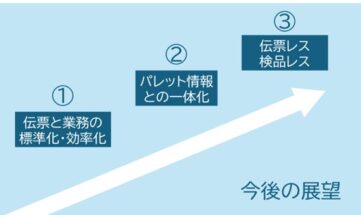 ・パレット受け払いのワンストップ化伝票データとパレット情報をセットで取り扱い、入荷手続きと同時にパレットの受け払いも完了できる運用を目指します。